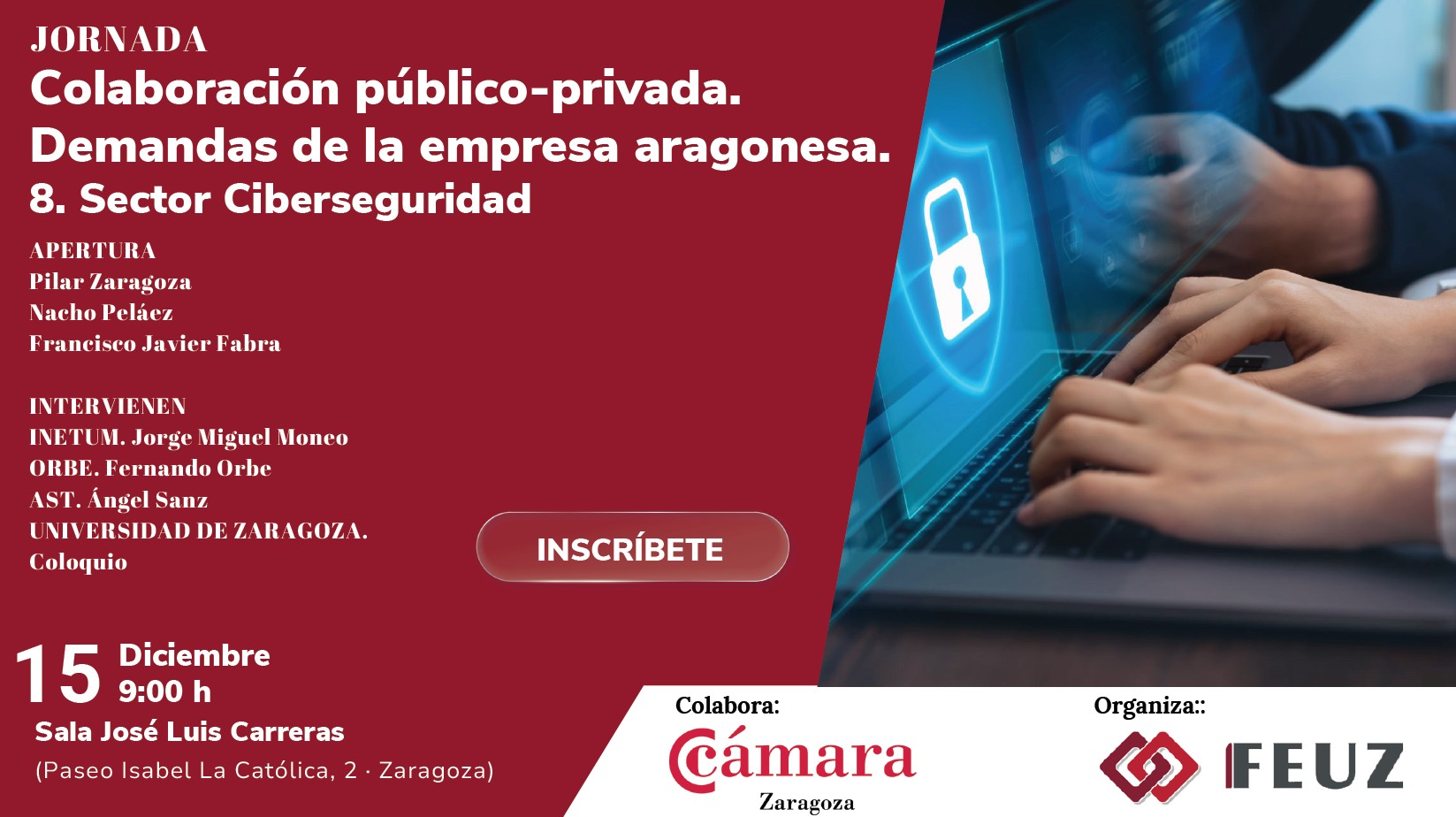 Esta jornada tendrá lugar el 15 de diciembre de 9 a 11 horas en el Aula Carreras de la Cámara de Comercio de Zaragoza y abordará las demandas de la empresa aragonesa en temas de ciberseguridad.